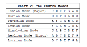 But in fact, any number of other scale formations are available to the creative musician, ranging from the old Church Modes through the so-called synthetic scales (which have exotic names like Super Locrian, Oriental, Double Harmonic, Hungarian Minor, Overtone, Enigmatic, Eight-Tone Spanish, and so on, and on into symmetrical scales (what twentieth-century French composer and teacher Olivier Messiaen called the “Modes of Limited Transposition”) such as Whole Tone, Chromatic, and Octatonic/Diminished.