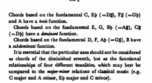His tonal system grew out of functional music. An uninterrupted line of evolution can be followed from the beginnings of functional . concepts, through the harmonies of Viennese classicism and the tone-world of romanticism to his axis system.