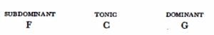 The sense of functional correlation in music was introduced in practice by the realisation of the I-IV-V-I affinity (in medieval modal music, at first in cadence form only) In the case of the C tonic: