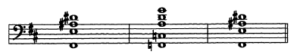 This sonority could also be interpreted as a quartal harmony based on E. The context can clarify the role of a harmony; for example, the chord above might be preceded by a clear dominant harmony on G. There are cases in the Piano Improvisations in which there is no clear context, leading to a certain amount of ambiguity.