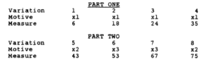 The cadences in part two use the x motive, but in new versions. The end of variation 5, for example, uses the following version of the motive, designated x2 (m. 43):