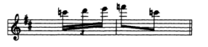 Other manifestations of the x motive play a lesser, though significant, role in the piece. One of these, designated x4, consists of two descending eighth notes, often a third or fourth apart: basically the skeleton of the other x motives. Considered in isolation, it would be difficult to hear a relationship between x4 and the other X motives. The context in which x4 appears makes the relationship much more viable. Like the other occurrences of X, x4 is used at points of climax— generally strong